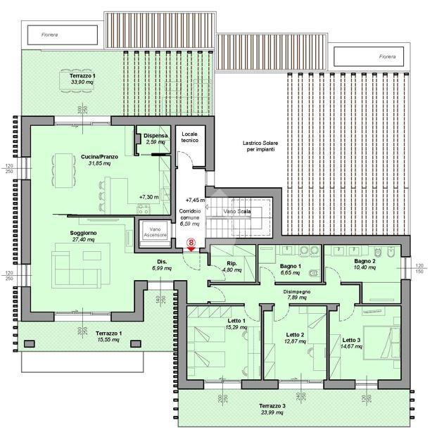 2 di 3 con ascensore (Piano attico)