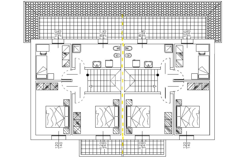 Al primo piano troviamo due camere da letto matrimoniali di cui una con terrazzo, una camera singola con ulteriore terrazzo di 14 mq. e bagno.